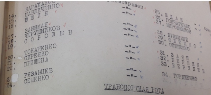 Тогда пригодился дополнительный список транспортной роты ПТУ, сегодня - следующий за ним в архивном томе.