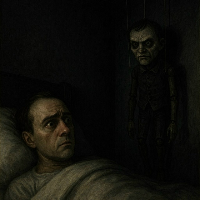 В углу висела та самая жуткая марионетка, смотрящая на меня своими холодными глазами, полными злобы и страха. Она приближалась ко мне все ближе и ближе как только я отворачивался от неё. Моё тело онемело от ужаса. И тут ко мне пришло осознание, смерть близка. Но до меня успело вовремя дойти, что кукла двигалась лишь в тот момент, когда на неё не смотрят. Как только я обращал на нее внимание, она замирала на месте, лишаясь своей силы. Её сила зависела от моего внутреннего состояния и реакции на угрозу.