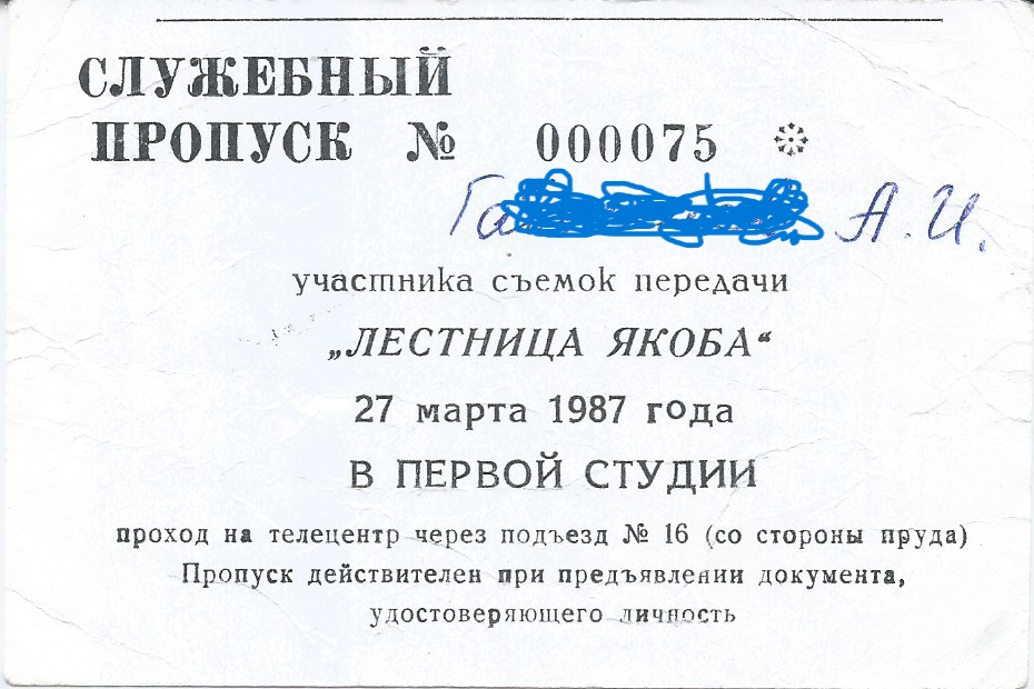 А случилось это в далёком 1987 году на записи телепередачи «Лестница Якоба» в гостях у «Утренней почты» в студии Телецентра «Останкино».