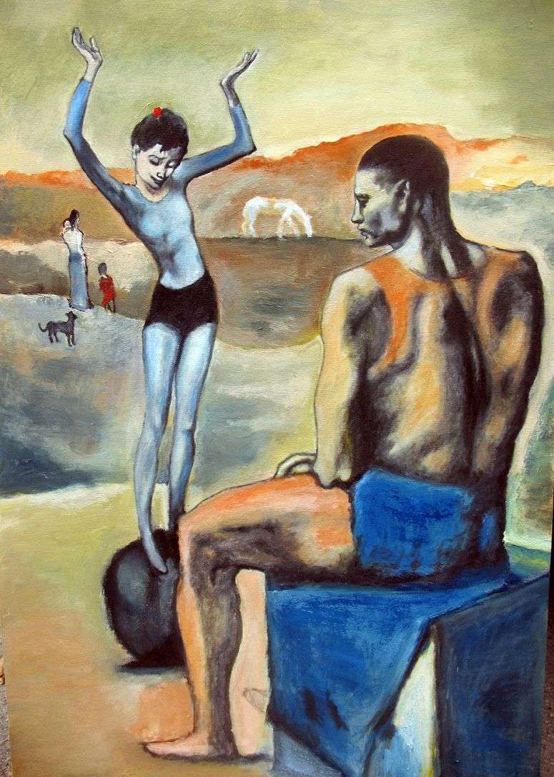 Вот тут-то и было видно, что она такая необычная. Своей фигуркой была похожа на гибкую тростинку. А её телодвижения: плавные и элегантные, изящество и грация. И тут же: быстрые, ловкие, чёткие, точные — Хищная Кошечка! И в то же время стоп кадр, и угловатая веточка, как «Девочка на шаре» Пабло Пикассо.