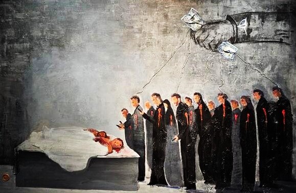 Эта картина была экспонирована на выставке Аиши Каддафи в Москве…