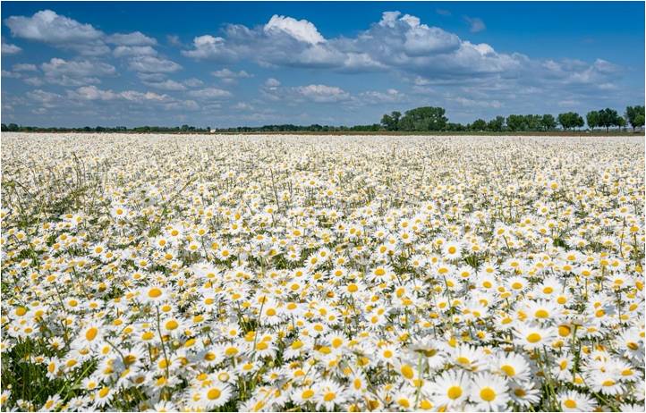 Я тоже так думала и очень сетовала на то, что в дороге придется провести больше времени, чем планировалось. Но каково было моё изумление, когда среди полей, засаженных вполне традиционными культурами, вдруг открылось огромное ромашковое поле. Восторг был... ну, просто восторг!