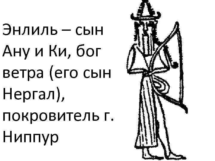 Энлиль (имя переводится как «Господин Ветра») был верховным божеством шумерского пантеона, олицетворял силу природы и плодородие. По мифам шумеров, именно Энлиль отделил небо от земли, способствовал улучшению сельскохозяйственного труда, познакомил людей с культурой.