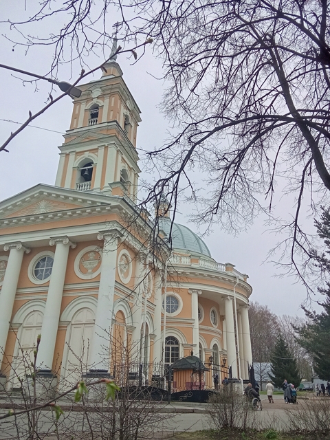 Народу здесь много христиане здесь все ,столы возле храма стоят во дворе ,и все прихожане здесь батюшку ждут.
