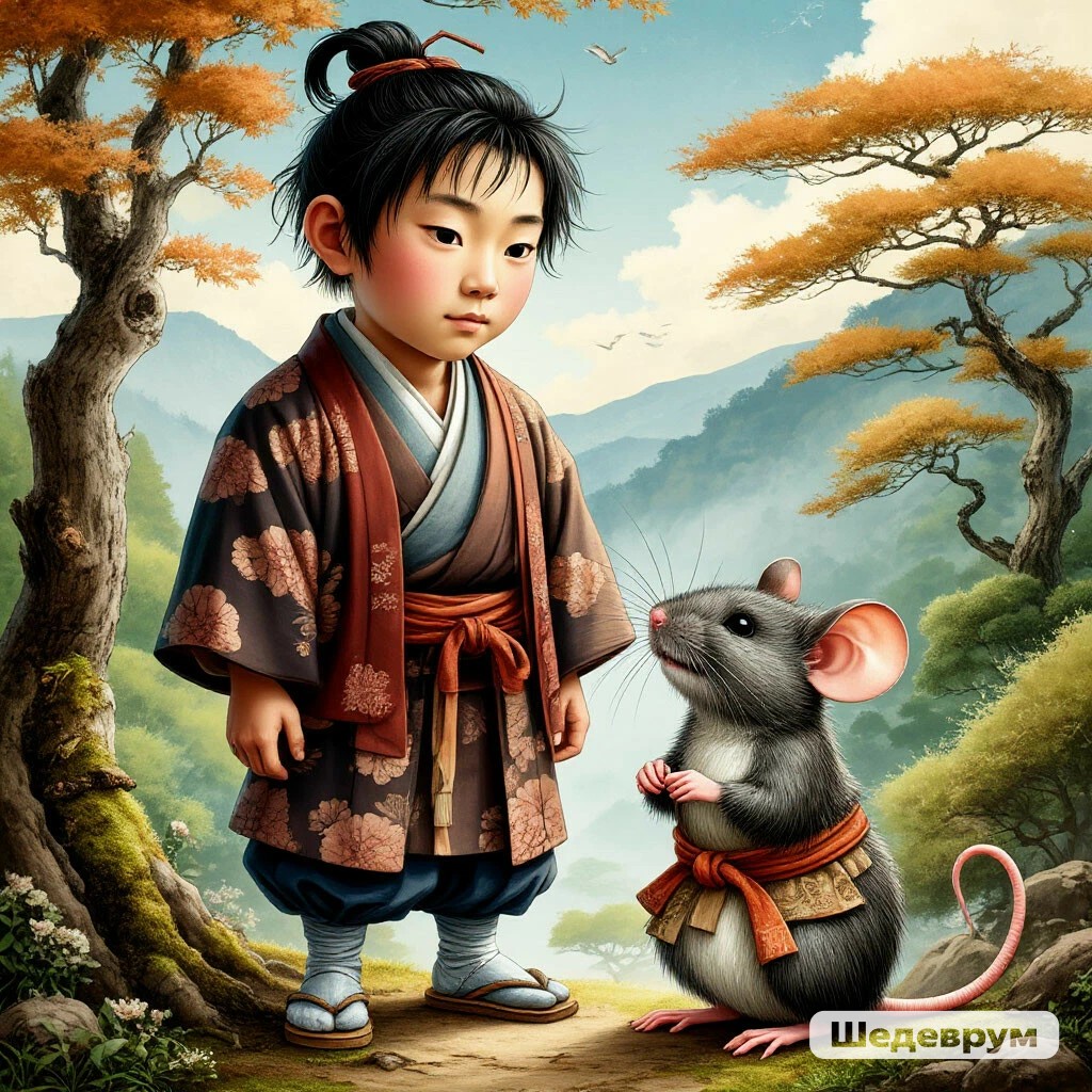 Бо слоняется по комнате, ему скучно. Мама Юбаба ушла по делам. Наконец он достает книгу из шкафа и начинает читать старую японскую сказку. Книжка с картинками, в ней мало текста, но много иллюстраций. Бо постепенно погружается в историю.