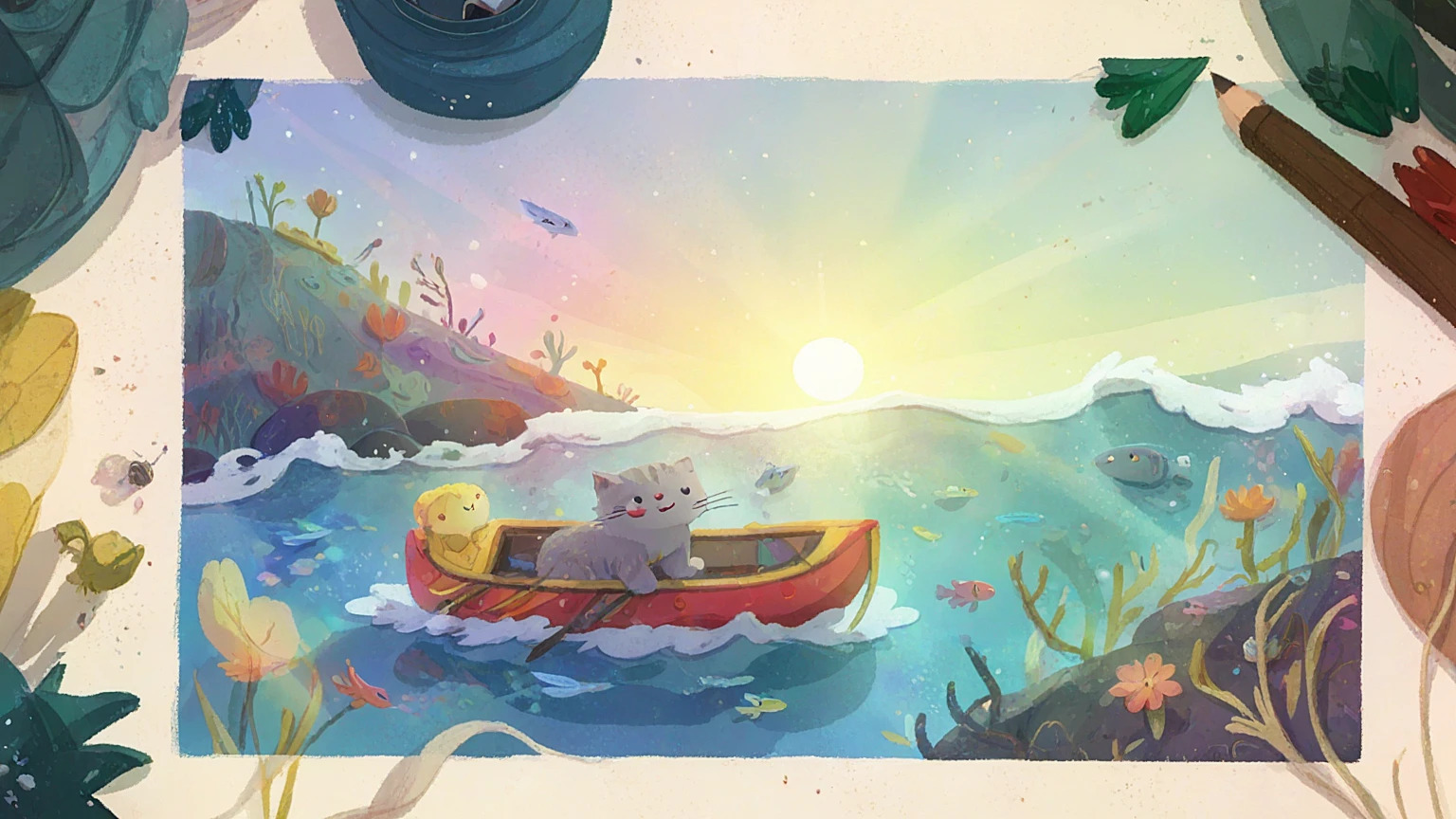 У самого края моря, в домике на песчаном берегу, жил маленький полосатый котенок по имени Кит со своей мамой-кошкой. Кит очень любил слушать истории о море и мечтал однажды отправиться в настоящее морское путешествие.