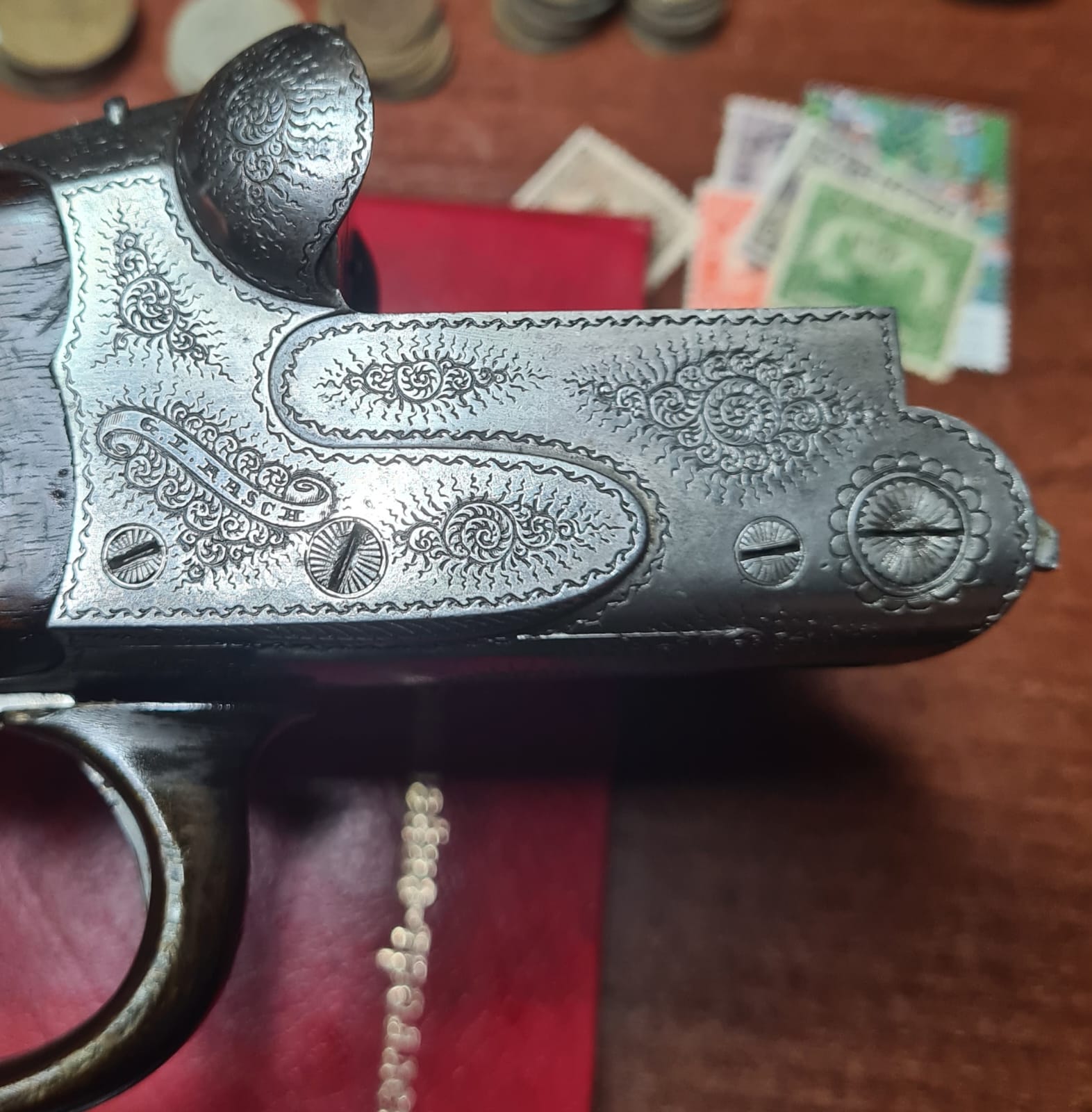 - А ты посмотри, говорили, расписывал какой-то Раш, не знаю, кто такой, может, русский, - дед через минуты две вернулся из спальни с трехствольным ружьем: два гладких ствола калибром 16 и один нарезной 7,92. Его украшала инкрустация знаменитого гравера. Гравировки Раша были невероятно красивы, узоры на металле создавали неповторимые картины. Если учесть, что гравер умер в XIX веке, то цена этого оружия, в зависимости от его истории, была значительно больше. Я дважды видел такие ружья на фотографиях у знакомого коллекционера, но вживую впервые.