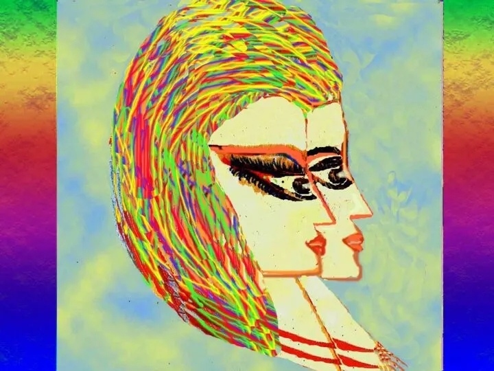Как-то под утро рисуя на лоджии за большим столом и вдыхая весенний воздух из открытых окон, я вдруг увидела и нарисовала 2 практически одинаковых лица с очень маленькой разницей.