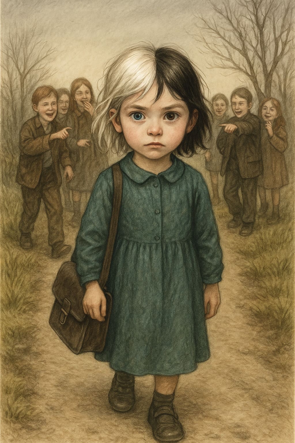 — Это они поют об одном необычном ребенке. Мальчики из Киргизии рассказали, что в Бишкеке родилась девочка со странными глазами. Один зрачок голубой, другой — светло-карий. И волосы у нее какие-то бело-каштановые. Не могу себе представить, как это выглядит. Тот, который больше всех поет эту песенку, когда-то был ее соседом. Его зовут Манас. Так вот этот Манас рассказывал, что бедняжку отовсюду гнали. Даже родственники ее не признали. Даже родная бабушка отказалась от нее. Бедную девочку так затравили, что родителям пришлось увезти ее. Она просто уехала из города и больше не возвращалась. А эта дразнилка так и осталась. Вот теперь бегают и поют ее как народную песенку.