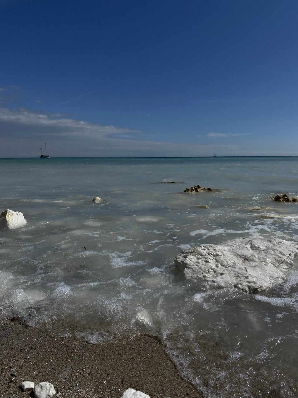 Слова оказались лишними этим утром. Они устроились внизу, у самого края — где вода подбиралась к ногам и уходила, будто что-то передумывала. Камни, наполовину покрытые водорослями, лежали, как старые сторожа.