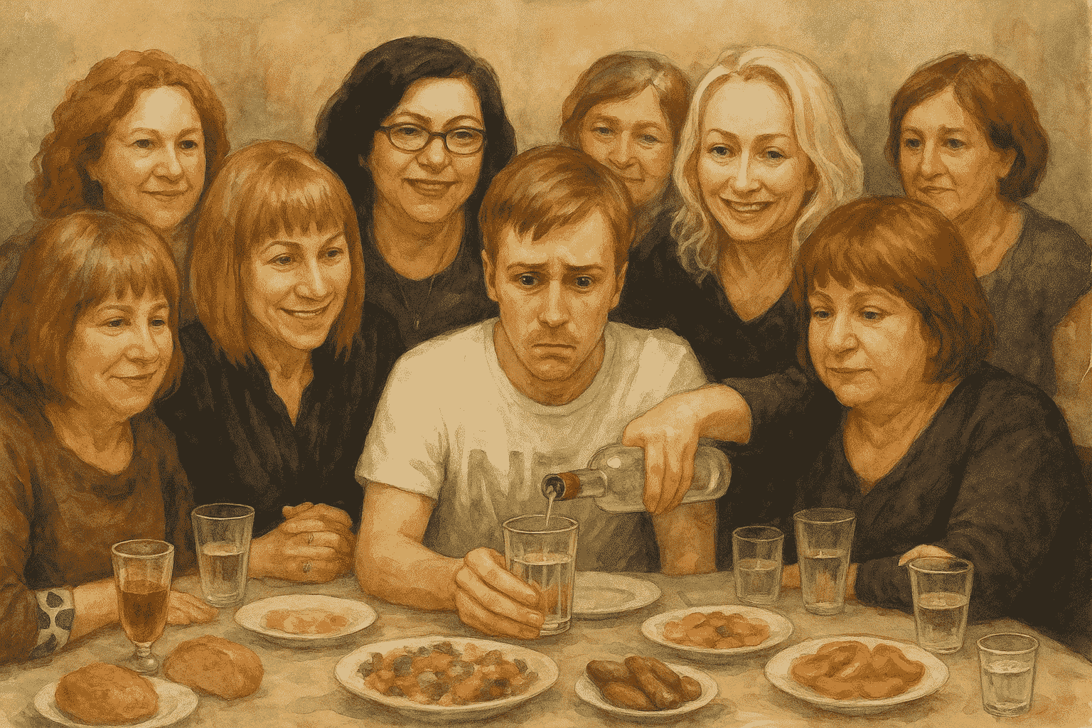 Василий Иванович Анфалов праздновал день рождения, случившийся днём ранее. Разделить яркое событие пришли: человек-оркестр Иван Битлс, скользкий тип Александр, старший прапорщик граф Орлов, бывший казанова Антонио Малушков, тухлая помидорка Павел Миллер, Хулио. Стол был завален двумя видами салата и несчётным количеством спиртного. В отличие от других (искушённых, непрозревших), Хулио уделял внимание закуске и хладнокровно игнорировал алкоголь.