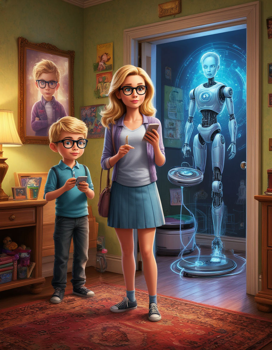 – Видите ли, госпожа, – попытался я всё объяснить, – этот ваш Робо, убирая комнату, потёр лампу и, по заведенному вами порядку и склонности мальчика к чистоте, вызвал джинна, то есть меня. И я готов исполнить ваши три желания. Осталось два. Кстати, я очень одинок!