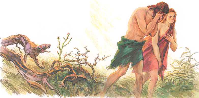 Бог, конечно, жестоко поступил со своими человеческими созданиями: «Адаму же сказал: за то, что ты послушал голоса жены твоей и ел от дерева, о котором Я заповедал тебе, сказав: не ешь от него, проклята земля за тебя; со скорбью будешь питаться от нее во все дни жизни твоей... со скорбью будешь питаться от нее во все дни жизни твоей; терния и волчцы произрастит она тебе; и будешь питаться полевою травою; в поте лица твоего будешь есть хлеб, доколе не возвратишься в землю, из которой ты взят, ибо прах ты и в прах возвратишься.» (Бытие гл.3).