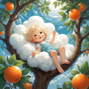 Перед Бубалялей стояли огромные апельсиновые деревья. Бубаляля поднял голову вверх и увидел ярко-оранжевые апельсины, напоминающие луну в небе.