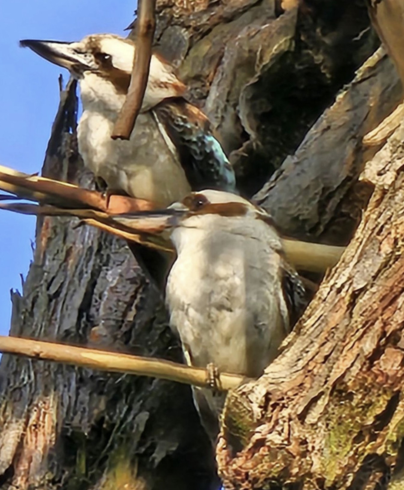Кукабарры не боятся людей, но никогда не берут еду из рук, в отличает от какаду. Может быть потому, что им мяска на предлагают? Хотя, я слышала от кого-то, что иногда жители прикармливают их мясом, и те к ним довольно-таки регулярно прилетают.