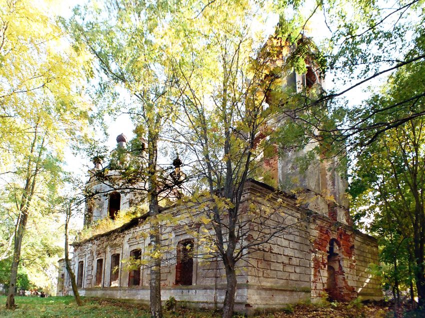 Храм разрушен, сохранился дом священника.
