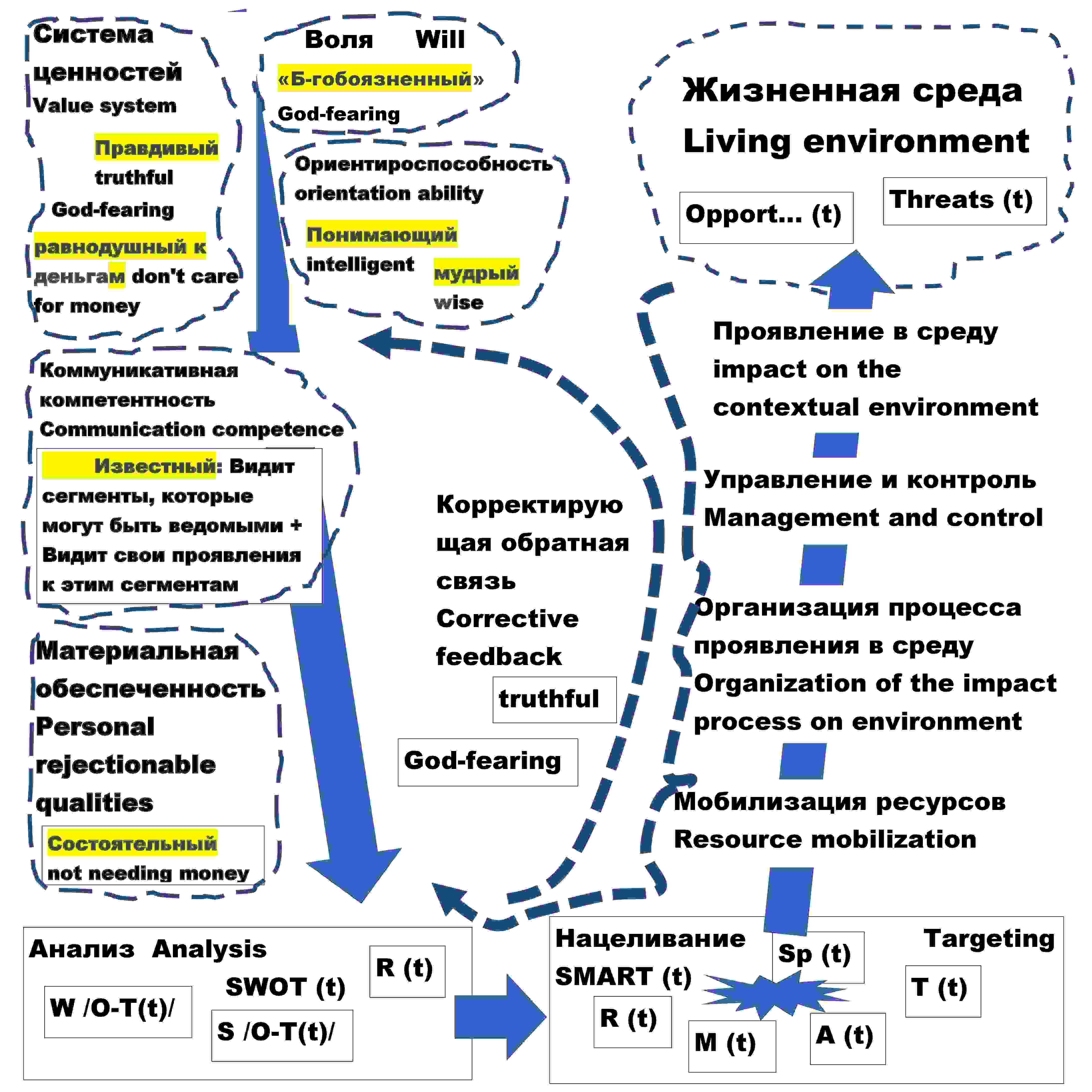 На схеме показано, как эти замечательные качества Судей позволяют им провести эффективный анализ экзистенциальной проблематики еврейской массы, наметить релевантны цели и осуществить такое проявление массы в среде, которое обеспечит выживаемость этой массы в конкурентном окружении.