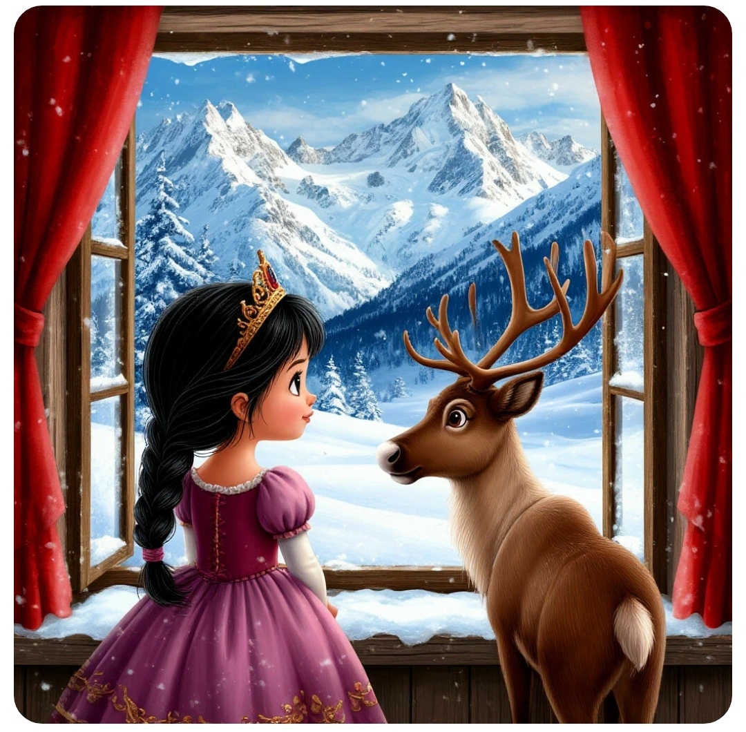 Олень усадил принцессу на подоконник, подложив под спину мягкую подушку. Снаружи мир искрился свежестью утра. Первые лучи солнца золотили верхушки снежных гор.