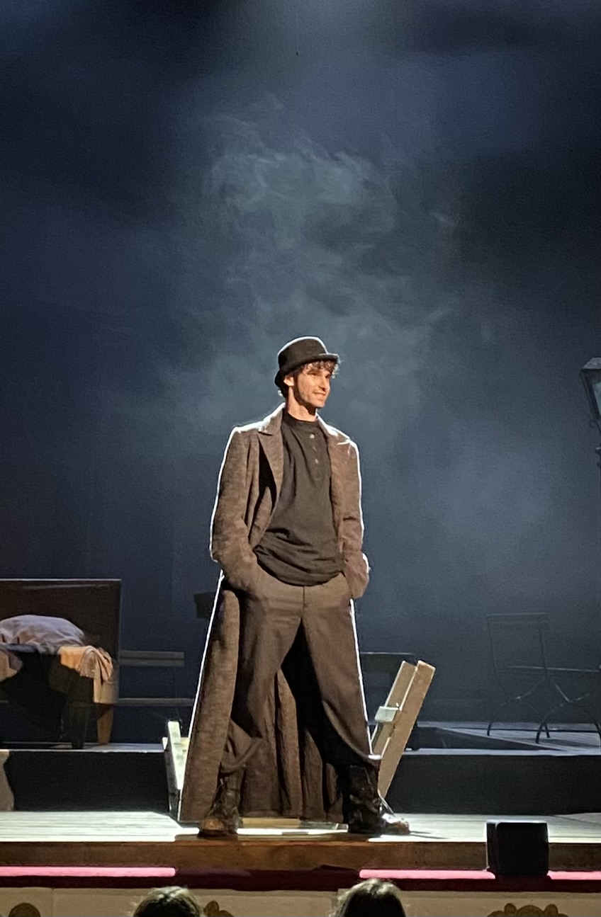 Начало. Свет гаснет. Всё в дымке и чёрном цвете. Раскольников - Петя Харченко - ходит по мосткам над каналами, как тень, между тускло светящими фонарями. Фантасмагоричный, туманный, душный и неприветливый Петербург. Больной город. Такой же, как и каждый живущий в нём человек. «Воздуху нет!» - фраза, постоянно высказываемая разными персонажами, совершенно точно передаёт тот накал эмоций, скопившихся в атмосфере города.