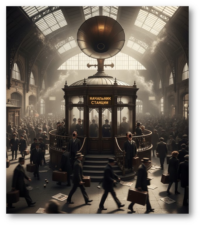 Некоторые голоса, звучащие громче других, докрикиваются до начальника станции и получают разрешение на аудиенцию.