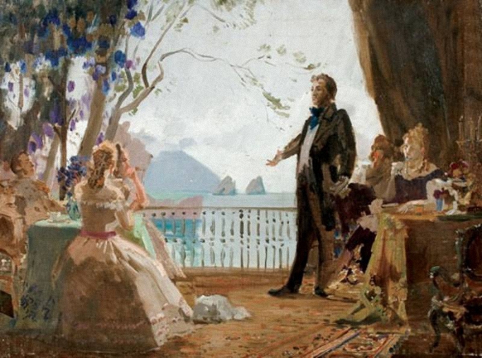 Алина вздрогнула от легкого прикосновения руки с большим перстнем, сначала она увидела этот перстень графини Воронцовой, с которым поэт не расставался, а потом и самого Пушкина, немного печального, с раной на груди, белая рубаха была в крови, так вот почему он там оказался.