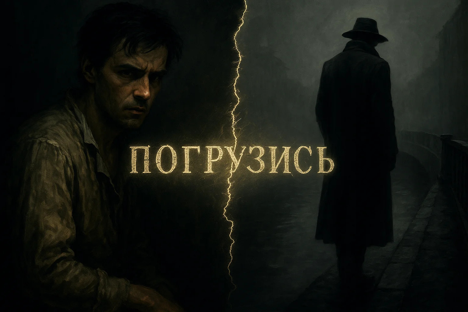 — Простите… не подскажете, как пройти к дому Алёны Ивановны, процентщицы? Слова прозвучали неестественно громко в удушливой тишине моста. Фигура впереди резко остановилась, будто наткнувшись на невидимую стену. Медленно, с трудом, словно каждое движение причиняло боль, незнакомец обернулся. Алексей увидел бледное исхудавшее лицо, с тёмными глазами, а из-под выцветшей шляпы виднелись тёмно-русые волосы.