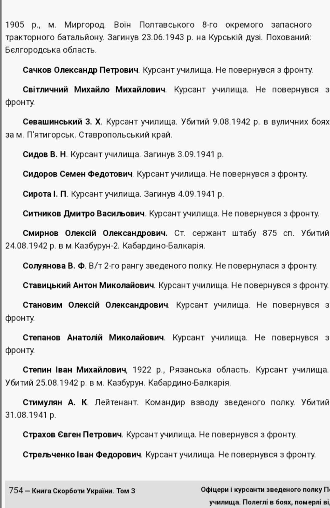 Сирота I.П. Курсант училища. Загинув 4.09.1941р. (КСУ).