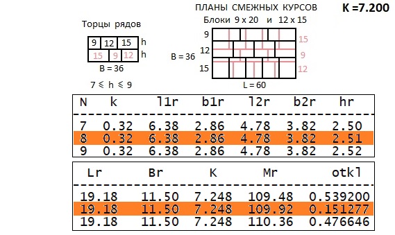 Нужно отметить, что не всегда магические кладки позволяют столь точно вписываться в задаваемые габариты секции. В основном задачу удается выполнить только двумя типами блоков, но разных по массе. Зато автору пришлось выполнить буквально тысячи проектных задач и лишь небольшой процент решений осилили как раз магические кладки. Их общее количество, как уже говорилось ранее, равно 45. Именно такие удачные проекты представлены в данном Приложении 2.