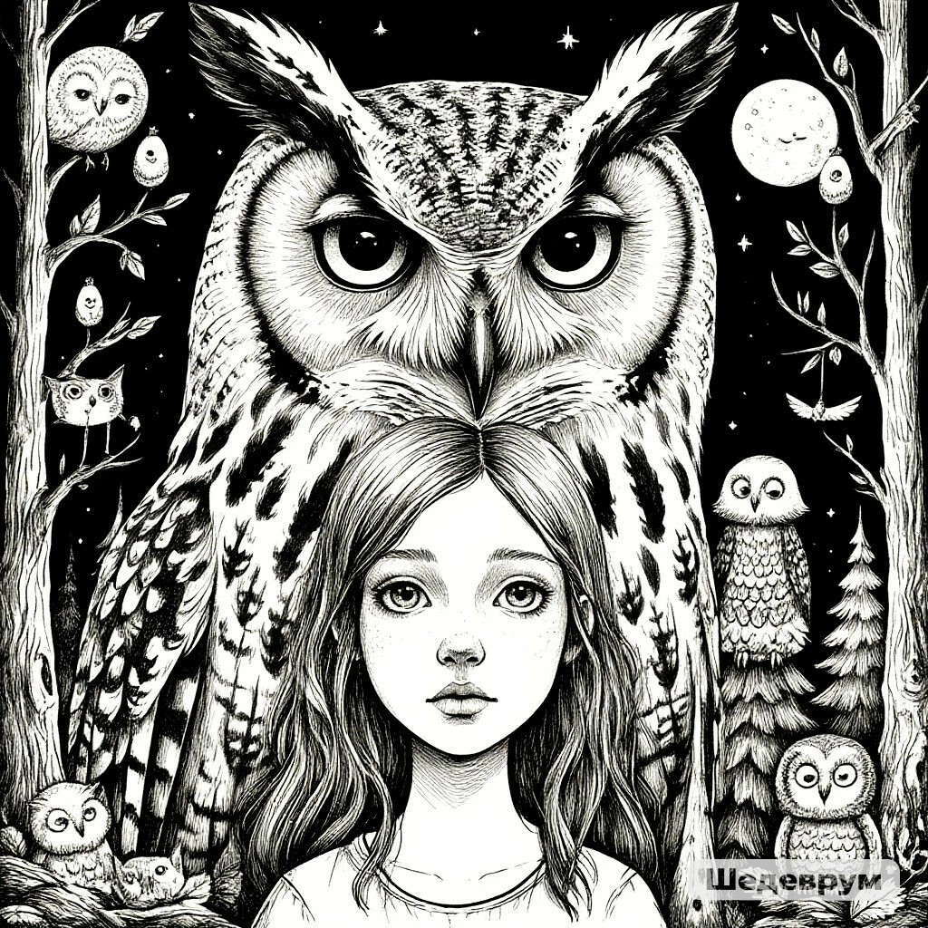 Филин бесшумно срывается с места. Чёрная ветка качает чёрную ночь.