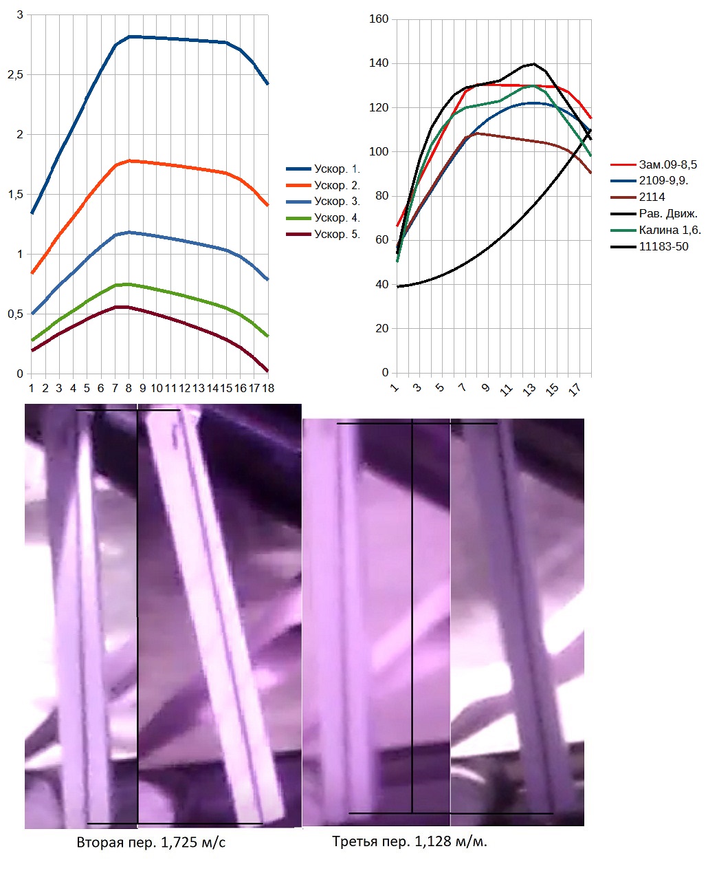 После проведения замеров выяснилось, что инерционность двигателя имеет весьма большое значение на низших передачах, по отношению к инерционности автомобиля.