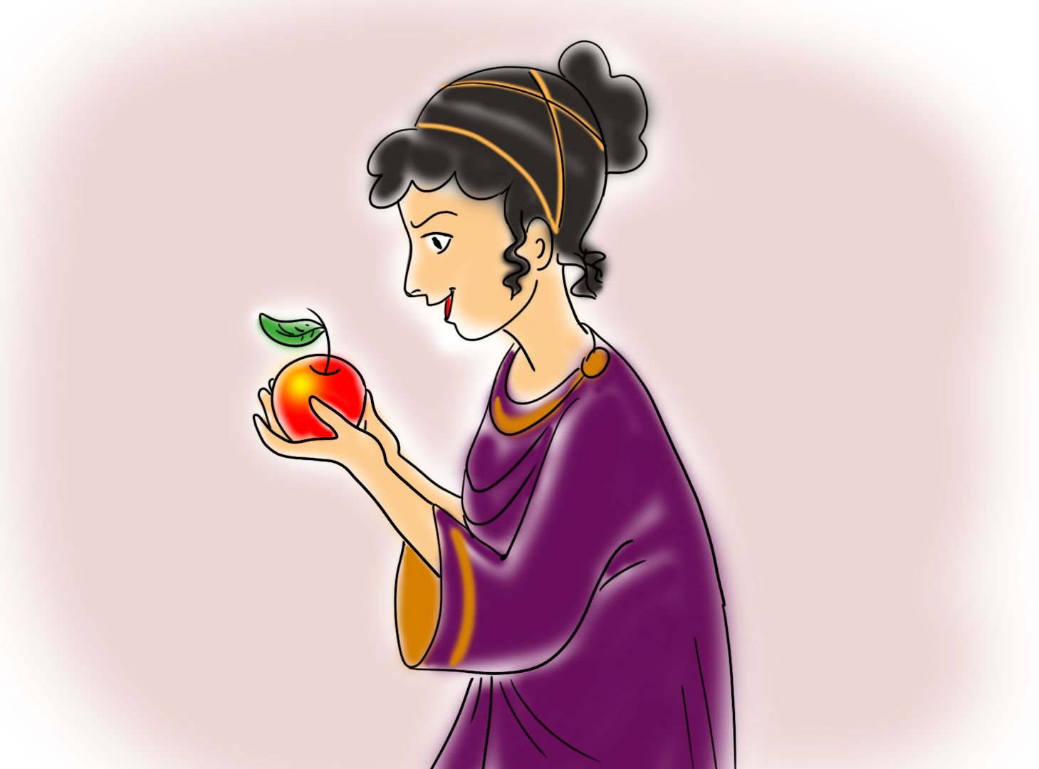 На этом яблоке было написано "прекраснейшей". Возьмите самое большое яблоко и попробуйте выцарапать на нем эту надпись...