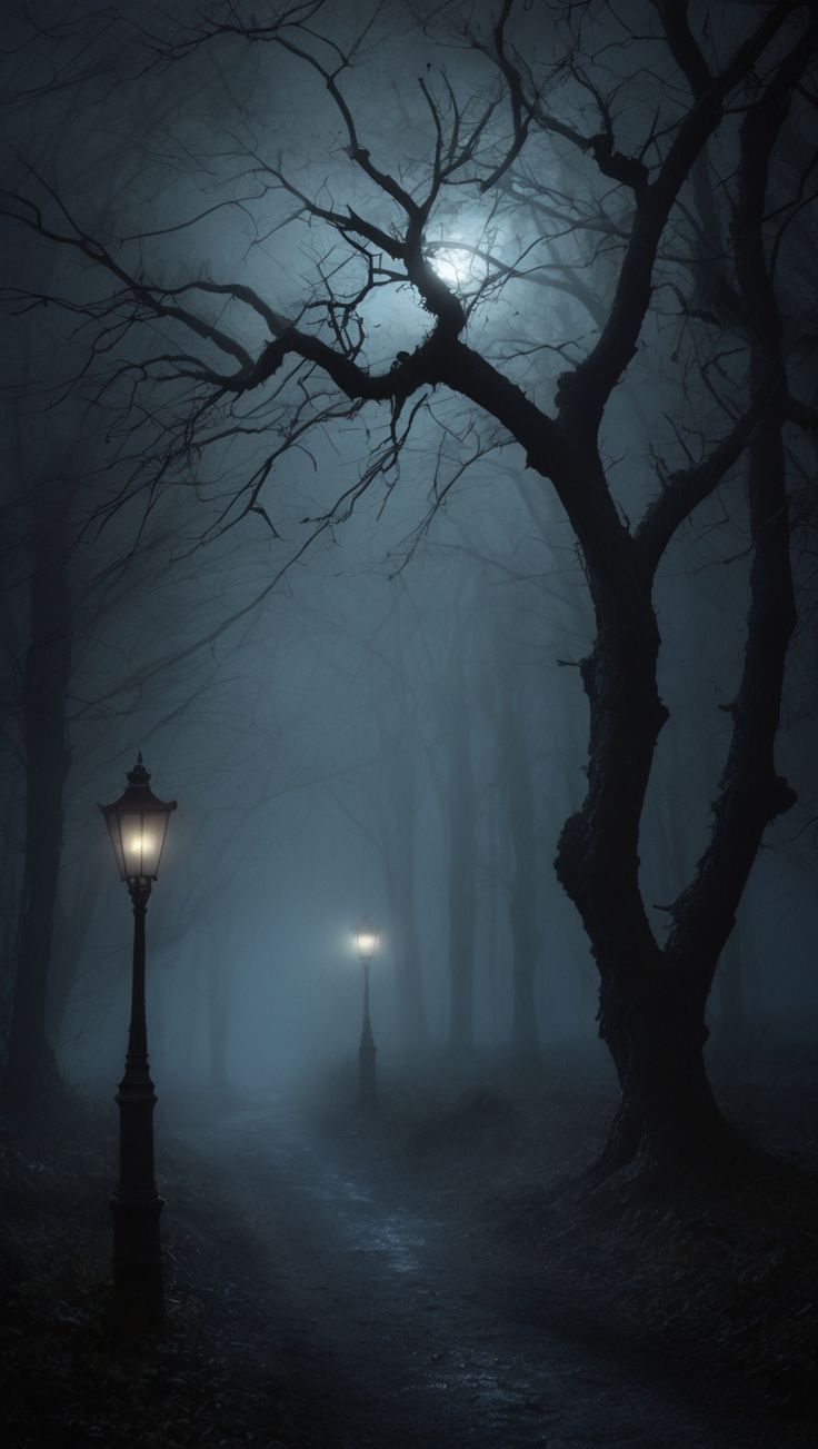 Между двумя фонарями простиралась узкая тропинка, которая вела в самое сердце леса. Туман клубился вокруг нее, как живое существо, словно пытаясь скрыть ее от любопытных глаз.