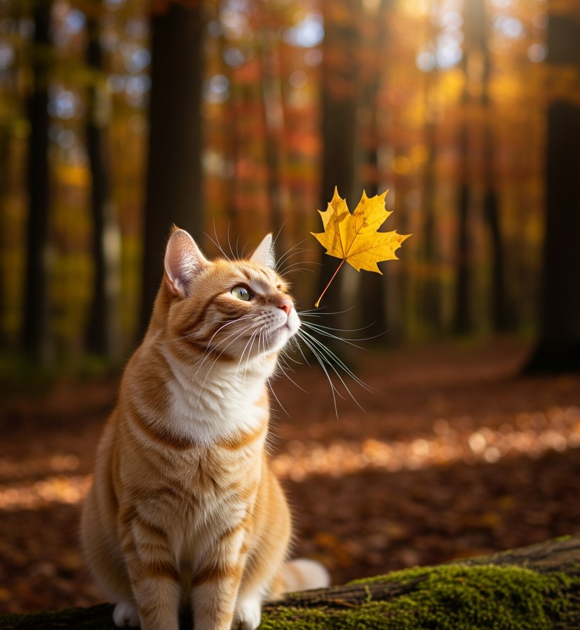 А дальше дело за малым. Падает первый лист, тихо, беззвучно, как будто специально для тебя. И в этот момент осень решает, что пора полностью войти в твою жизнь. Она прыгает на руки, уютно устроившись, и смотришь в её глаза — такие умные, спокойные, немножко лукавые. И в них читается всё: холодок утреннего воздуха, золотой свет позднего солнца, шорох листьев под ногами.
