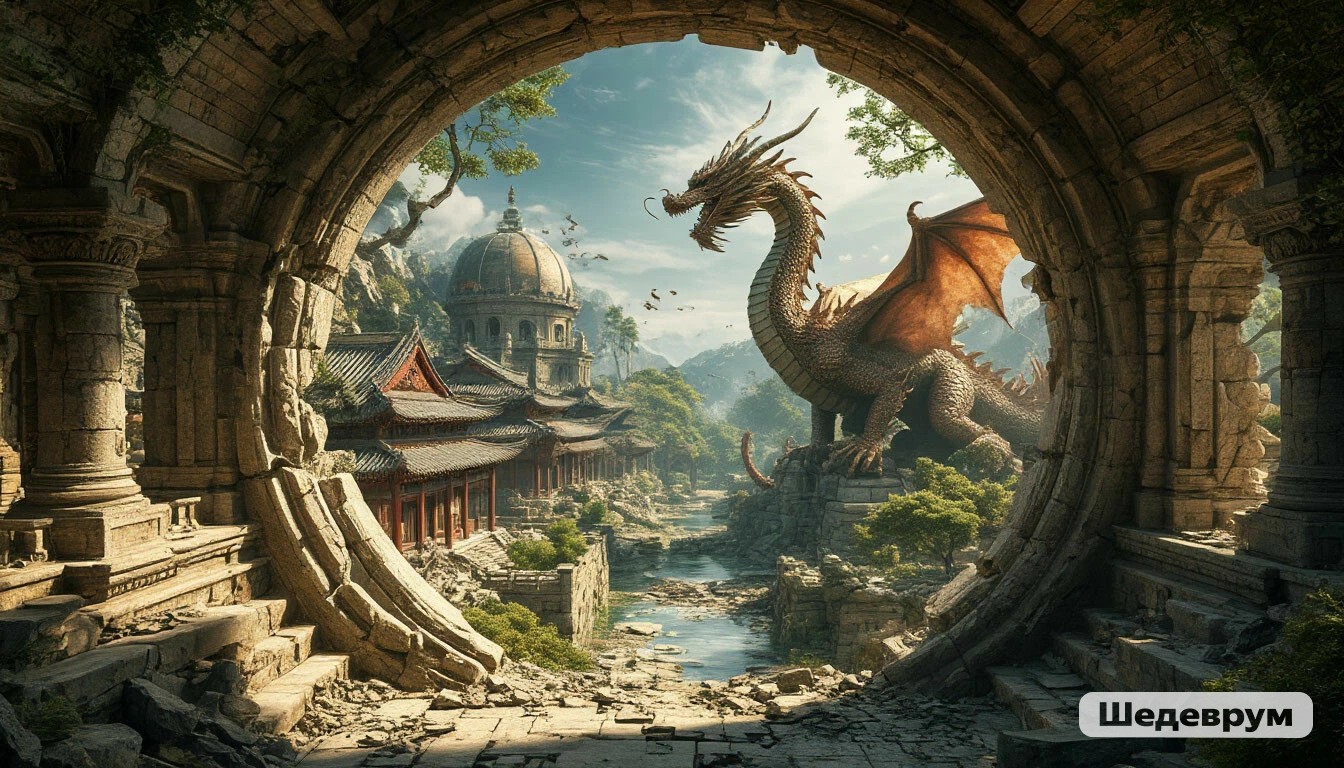 Они увидели, как в обратном порядке рушились и возводились дома, храмы, фонтаны. Статуи драконов рассыпались в пыль и вновь собирались из грубых глыб. Деревья росли и умирали, сбрасывая и вновь надевая кольца веков. Сквозь этот калейдоскоп времён лишь Обсерватория стояла незыблемо, словно якорь в бушующем потоке истории.