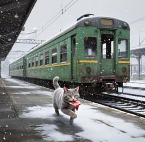 А тут ещё возле Васькиного перрона остановилась электричка и пролезть под неё на той скорости, с которой бежал кот было бы очень сложно, не потеряв свою драгоценную ношу. Пришлось на ходу сворачивать на запасные пути.