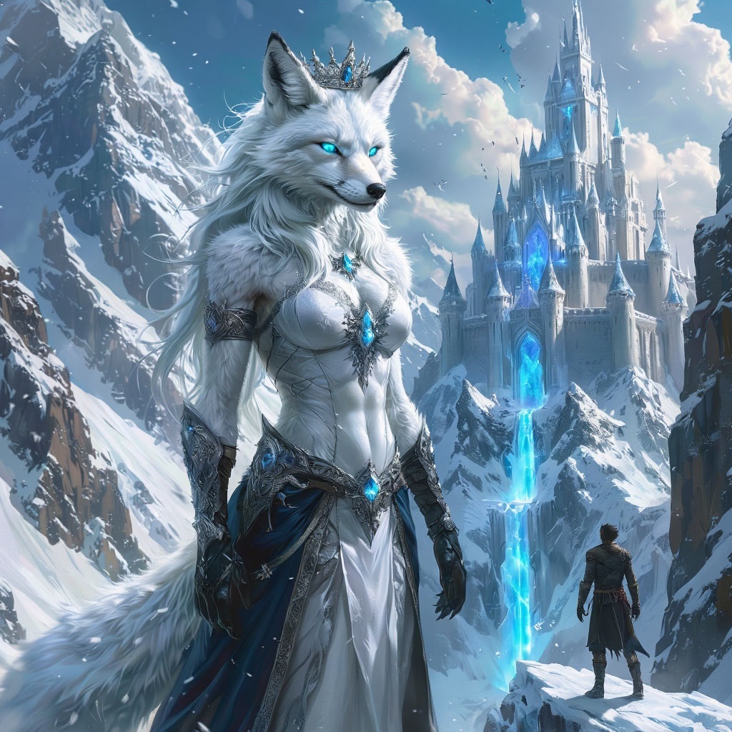 Зима в этом королевстве была особенной. Она не просто укрывала землю белым покрывалом снега, но приносила с собой таинственную силу, способную менять судьбы. В горах, где снег никогда не таял, жила Снежная королева — прекрасное, но холодное создание с зелеными глазами, сверкающими, как изумруды, и чье сердце было заперто в ледяной клетке. Говорили, что она могла заморозить душу одним лишь взором, и многие рыцари, искушенные ее красотой, навсегда теряли себя в снежных просторах, а те, кто осмеливались провести с ней хоть одну ночь, превращались в пыль, становясь жертвой ее тёмного облика — оборотня - кровожадной и беспощадной лисы убийцы.