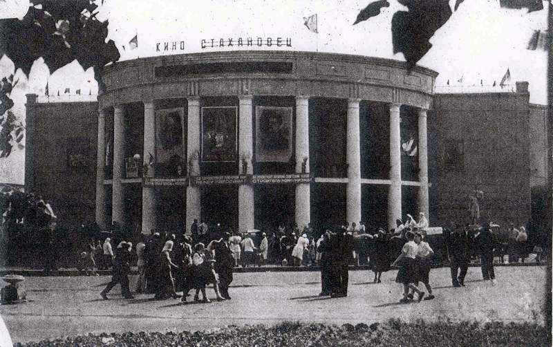 На ФОТО 1952 - кино-театр "Стахановец" в городе Кадиевка (сожжен в ""2020-м "нью-РУСским") -