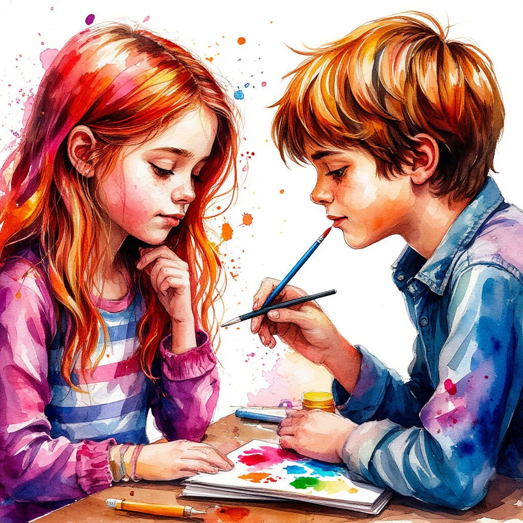 играющие с акварелью,