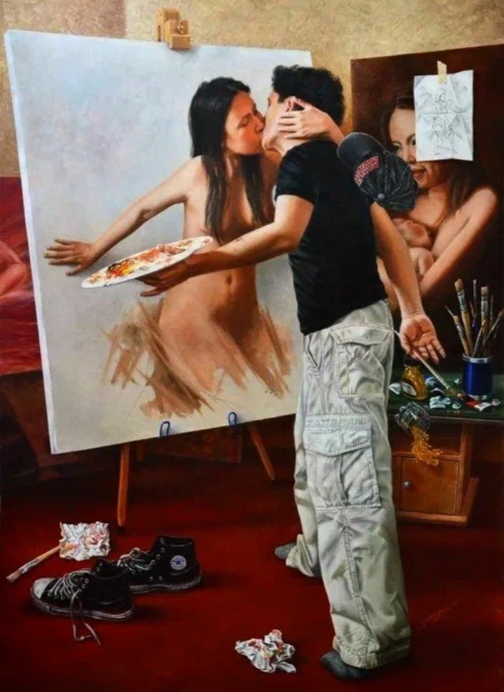 Я начал рисовать. Уже маслом. Сначала тени, потом свет. Каждый мазок был как прикосновение. Я чувствовал, как между нами возникает что-то… напряжённое, но совсем чистое чувство. Не секс, не похоть — а доверие. Глубокое, немного дрожащее доверие.