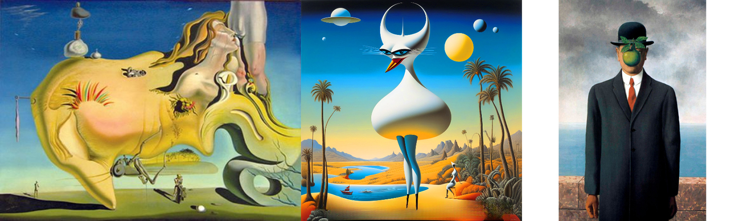 «Сын человеческий» Рене Магритта упоминается как пример сюрреализма, тогда как «Кокетка» демонстрирует уникальный визуальный язык прессюрреализма. proza.ru