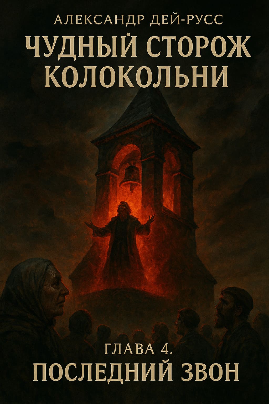 И тут ударил колокол. Но ударил он не так, как прежде. Не звон, не гул — а протяжный, огненный звук, который разлился по всему городу, словно кто-то раскрыл над головами гигантскую медную книгу и прочёл в ней одно слово. У каждого в душе это слово было своё: у одного — «страх», у другого — «радость», у третьего — «конец».
