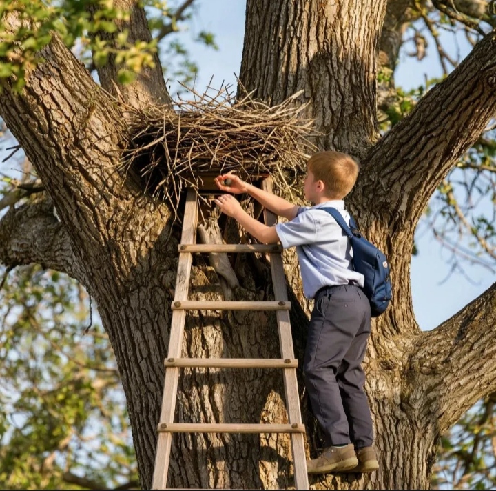Однажды Глеб и Василиса прогуливались по лесу и услышали тревожное карканье, доносившееся из густых кустов. Подойдя ближе, дети увидели маленького птенчика вороны, который выпал из своего гнезда. Он тряс головой и с испуганными глазами смотрел на ребят. Гнездо находилось высоко на ветке, и добраться до него было сложно. "Мы должны помочь ему! — воскликнула Василиса, осторожно взяв на руки птенца. — Посмотри, как он маленький, испуганный и весь дрожит, ему плохо без мамы". Вороненок раскрыл клювик и жалобно каркнул, ему было страшно. А ворона-мама летала вокруг и жалобно просила: "Спасите моего птенчика!" Глеб посмотрел на птенца и кивнул: "Да, надо положить его в гнездо. Только как достать, слишком высоко". Ребята задумались. Они вспомнили, что у дедушки Дормидонта есть лестница. Вдвоем они принесли лестницу и прислонили ее к дереву. Глеб поднялся по лестнице, аккуратно потянулся к верхней ветке и после нескольких попыток смог положить птенца обратно в гнездо, где сидели его братья. С облегчением он спустился вниз. Вороненок, очутившись в безопасности, радостно каркал, а ворона-мама летала вокруг гнезда и благодарила:"Спасибо вам, ребята, вы спасли моего птенчика!"