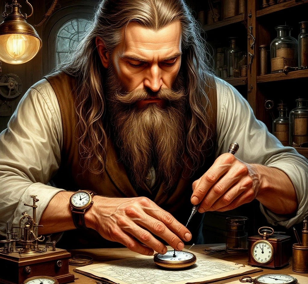 Тусклый свет фонаря за окном мерцал, будто пытался разглядеть сквозь запотевшее стекло, чем занимался старый часовщик в такой поздний час. Леонардо сидел за массивным дубовым столом, склонившись над крошечным механизмом. Его пальцы, покрытые тонкими шрамами от бесчисленных порезов, двигались с привычной точностью, будто сами знали, куда нажать, что подкрутить.