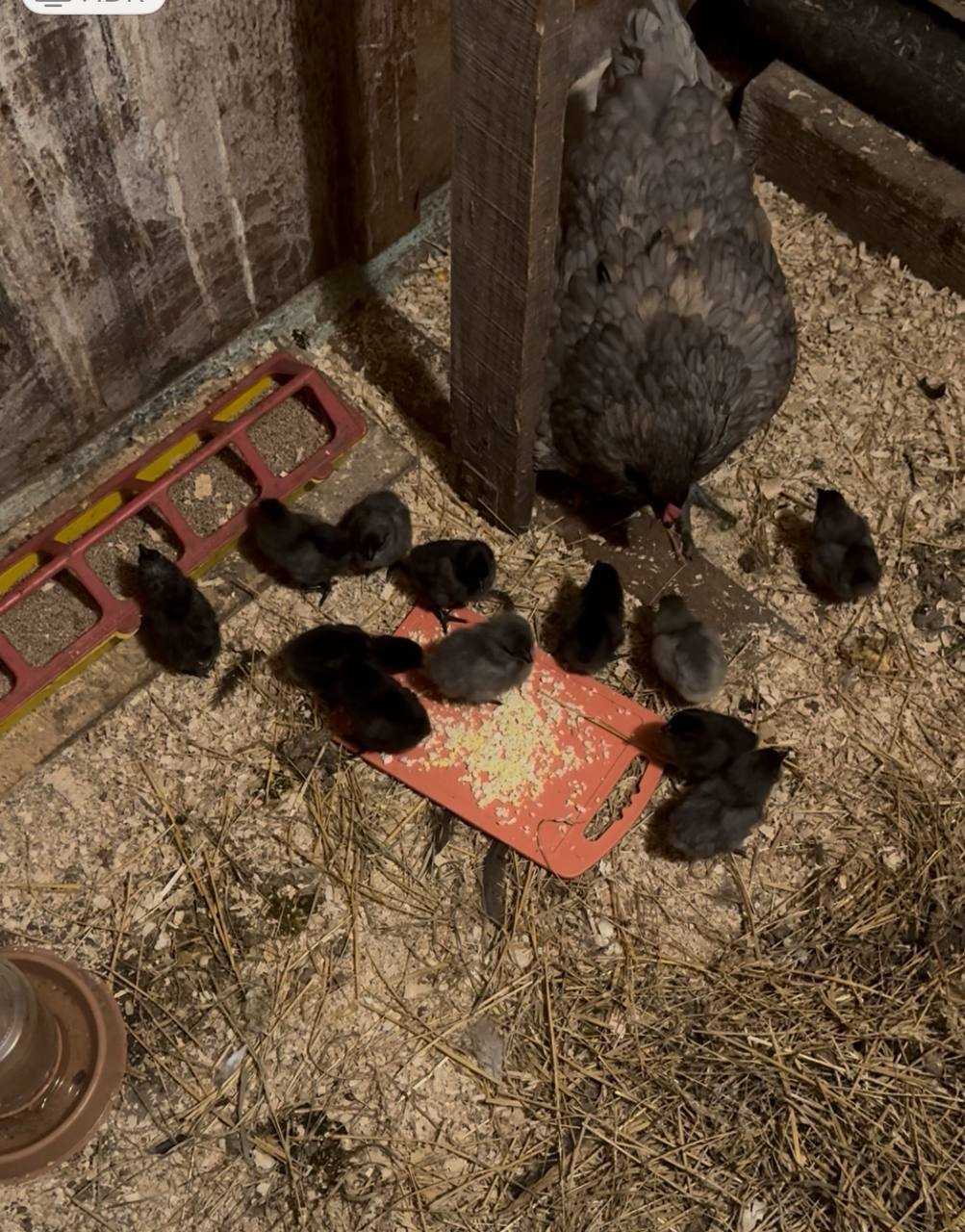 Половину цыплят из брудера ( остальных оставила для второй мамочки) ,в темноте подсадила к курочке. Она замерла…