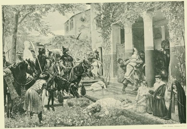 Гунны грабят римскую виллу. Худ. Rochegrosse, 1910.