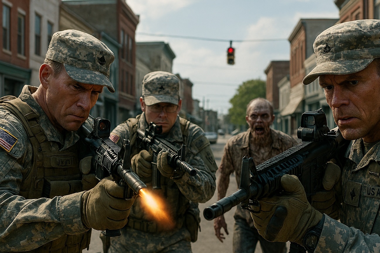 Стрелок по имени Билл вскинул винтовку и выстрелил. Пуля ударила женщину-зомби в плечо, развернув её и швырнув на капот микроавтобуса. Металлический грохот, визг детей внутри. Билл громко выругался.