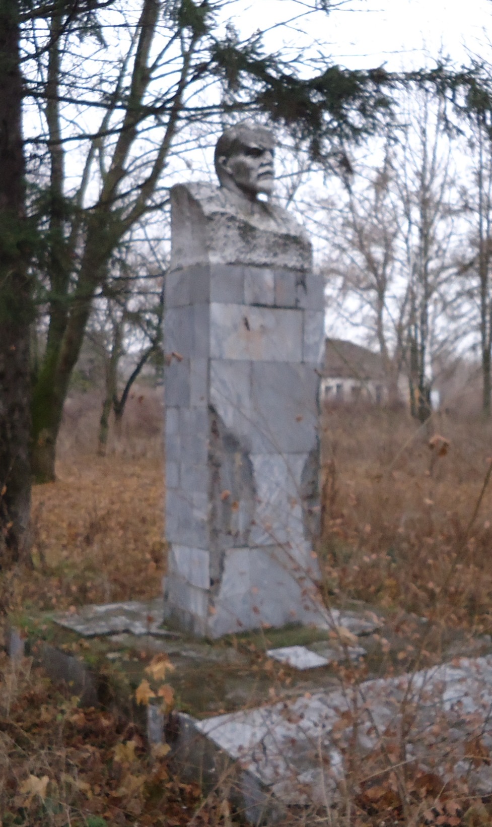 Во время работы по дальнейшему изучению оборонительных боёв 17-го (4 гвардейского) кавалерийского корпуса я обнаружил на топографической карте района на территории учебного хозяйства ПУ-55 топографический знак, обозначающий памятное место. Думая, что этот знак обозначает нечто, связанное с историей 4-го гвардейского Кубанского казачьего кавалерийского корпуса (именно на полях хозяйства держала оборону 15-я (11гв) Донская кавалерийская дивизия), я выехал к этому месту. Оказалось, что на карте обозначен памятник Ленину. Как видно из снимка, памятник находится в крайне плачевном состоянии: сам бюст и его постамент имеют трещины, сколы, территория заброшена, сам памятник не ухожен и забыт.