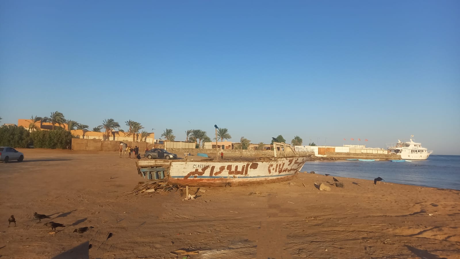Вышли к побережью и пляжам. Это пляжи для местных. Оборудованы ржавыми зонтиками,лежаками и столиками со стульями. Сделав заказ в пляжном кафе,автоматически получаешь лежак и зонт,ну или столик,кому что надо. Пляжи для местных совсем не похожи на пляжи при отелях,вход в воду оставляет желать лучшего,да и на берегу не совсем чисто. Кстати из египтян мало кто купается,в основном семьи проводят время на берегу.