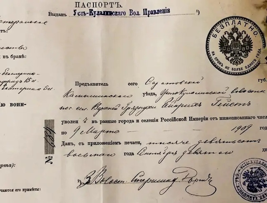 слово -беЗплатно - на печати в паспорте от 1909 года.