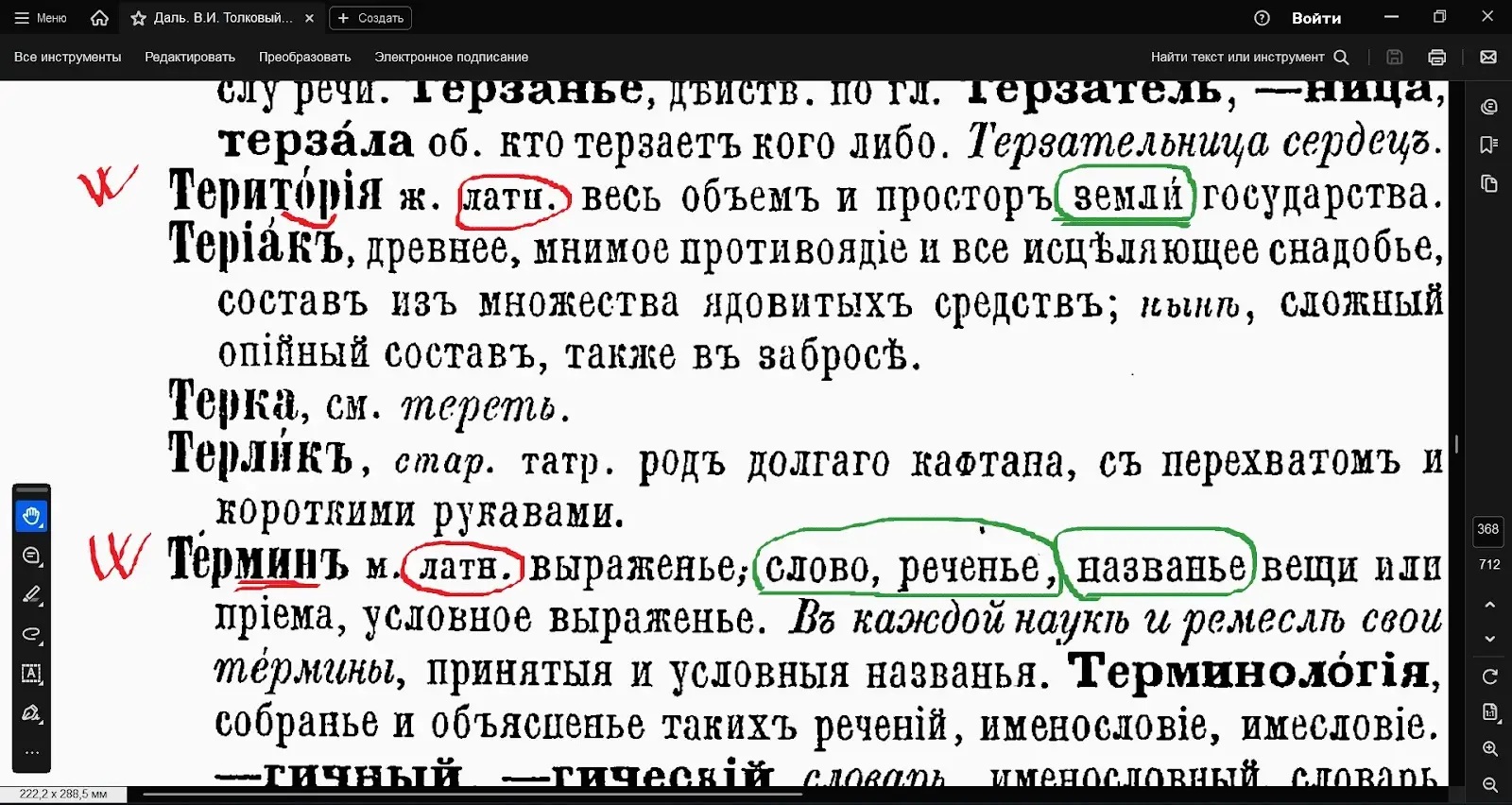 териТОРия(ИЯ) и терМИН - из словаря Вл.Ив.ДАЛЯ (том 4, стр.367).